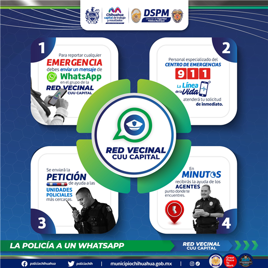 Con el objetivo de fortalecer la seguridad y fomentar un vínculo más cercano entre ciudadanía y policía, la Dirección de Seguridad Pública Municipal invita a las y los chihuahuenses a formar parte de la Red Vecinal.