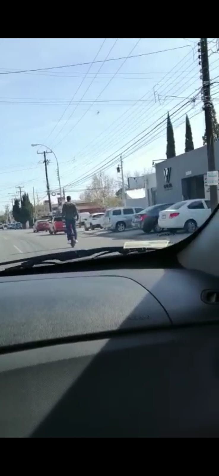 Por la avenida Trasviña y Retes de la colonia San Felipe en Chihuahua, fue captada una persona que circula a alta velocidad en un monociclo eléctrico, tan quitado de la pena como si fuera en un automóvil o un vehículo convencional.