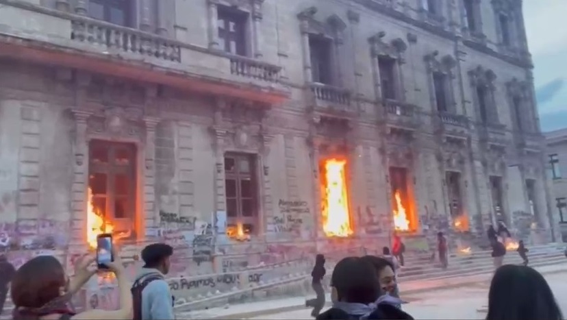 Varias ventanas de Palacio de Gobierno fueron consumidas por las llamas.