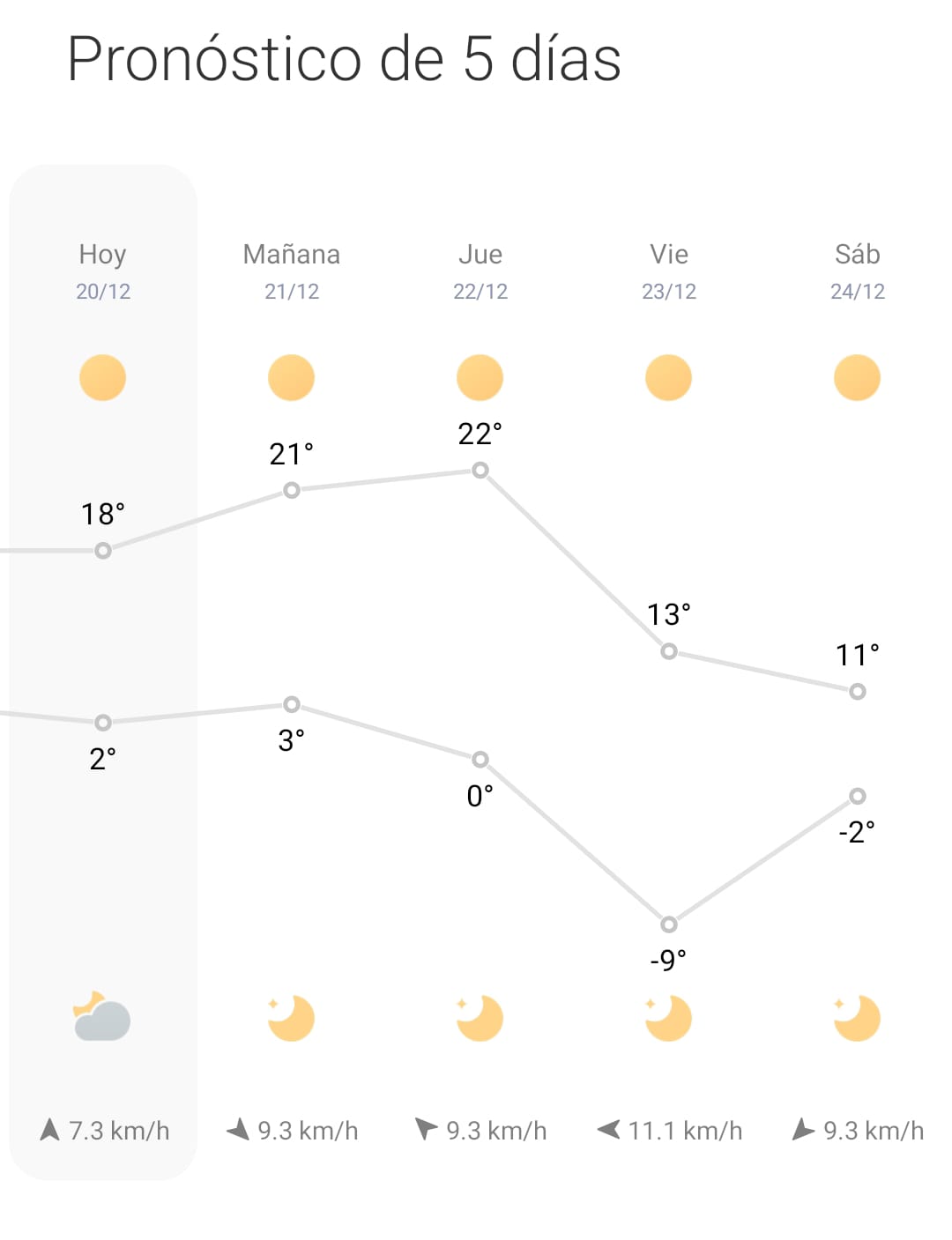 El pronóstico indica que miércoles y jueves habrá temperaturas agradables durante el día, que rondarán los 20 grados, y por la noche y madrugada hasta cero grados.