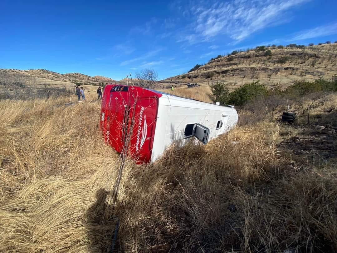 El chofer de un autobús de la línea Rápidos Cuauhtémoc perdió el control de la unidad y a la altura del kilómetro 51 de la carretera San Francisco de Borjas a Nonoava se salió del camino y luego volcó, por lo que todos los pasajeros resultaron lesionados.