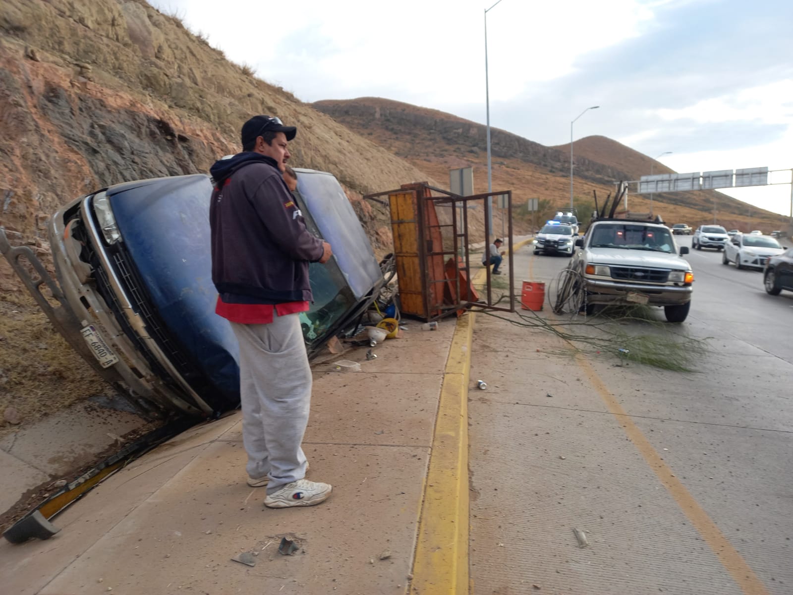 El accidente fue cuándo una camioneta tipo Pick up circulaba por la carretera Aldama sentido Aldama Chihuahua debido al exceso de velocidad falta de pericia termina impactandose contra el cerro y prácticamente volcando.